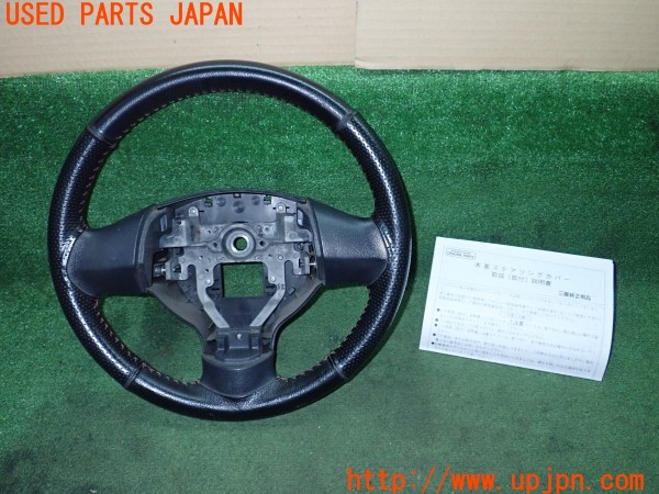 3UPJ=9233640617]パジェロミニ VR(H58A)後期 純正 ステアリング 純正オプション 本革ステアリングカバー付き 中古